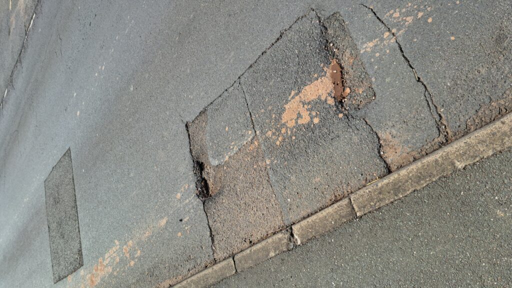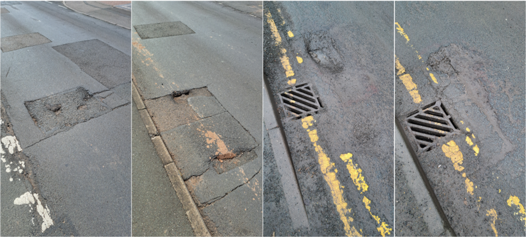The council says the road is in a “satisfactory” state but anyone who drives or cycles along it knows this isn’t the case.